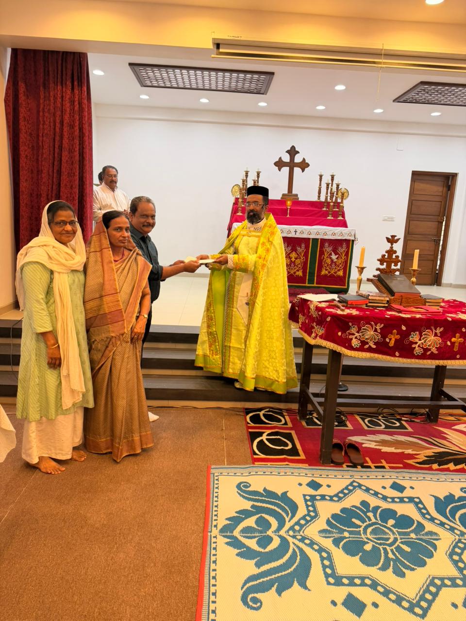 The cheque was formally presented by Mrs. Suja M. George and Mrs. Ammini Varkey to our Vicar, Fr. Lijo Joseph, and Kaisthani, Mr. K. C. Varghese.